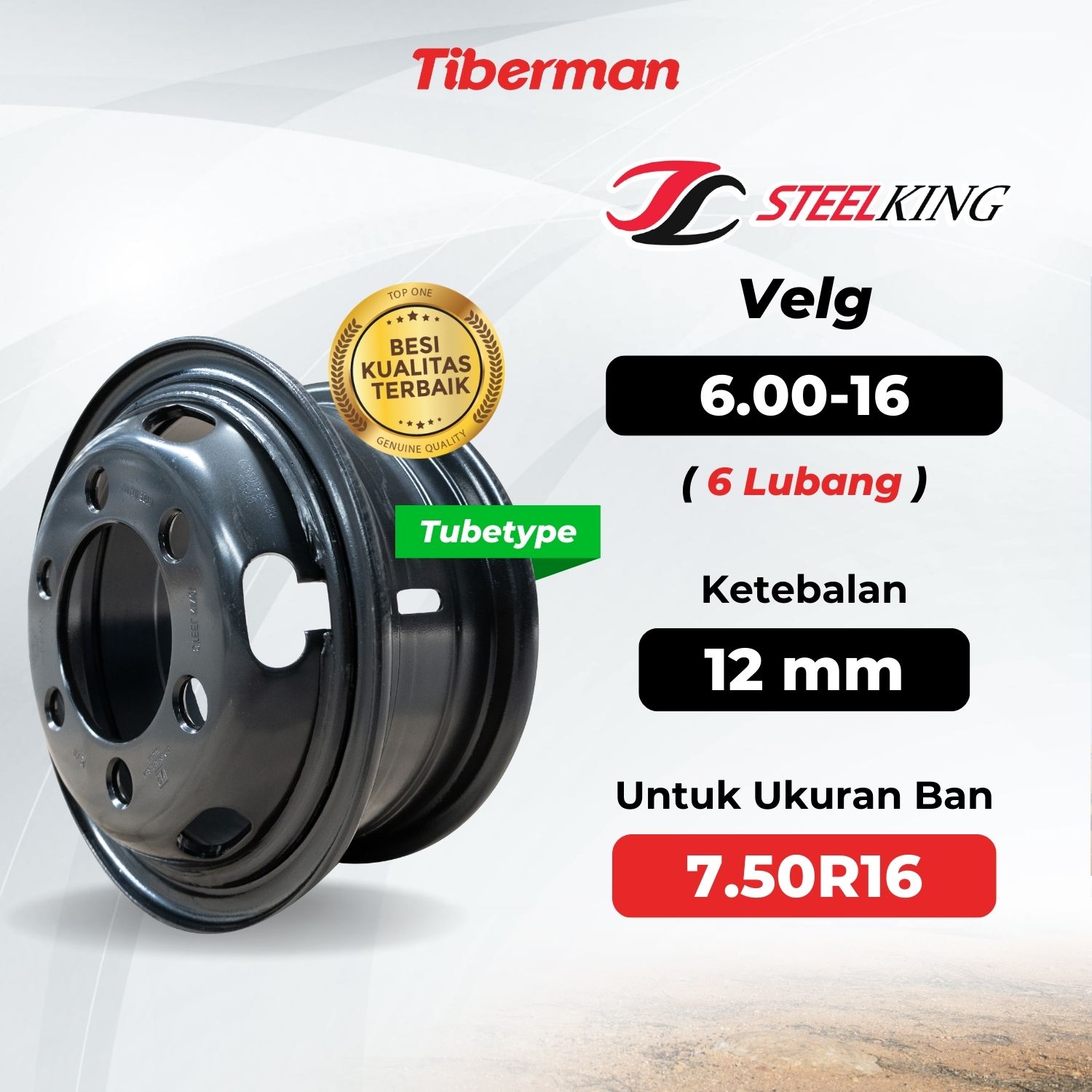 Velg SteelKing 7.50R16 6.00-16 (6 Lubang) 12mm Tubetype